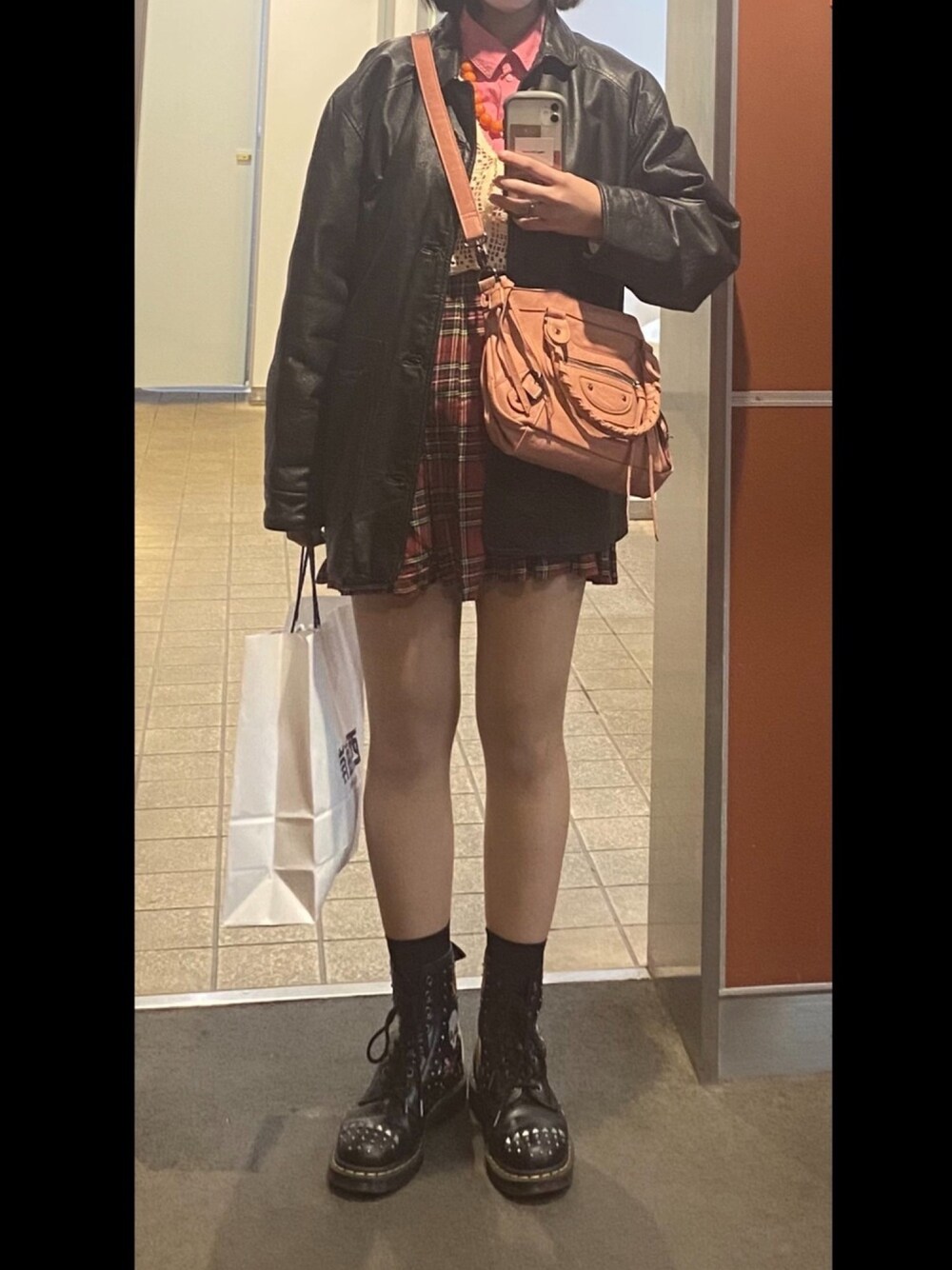 ピンク赤系×黒 パンクっぽいですが、ピンクのシャツとかぎ針編みニットベストでかわいらしさも演出しました。 漫画に出てきそうな女の子を意識しました。