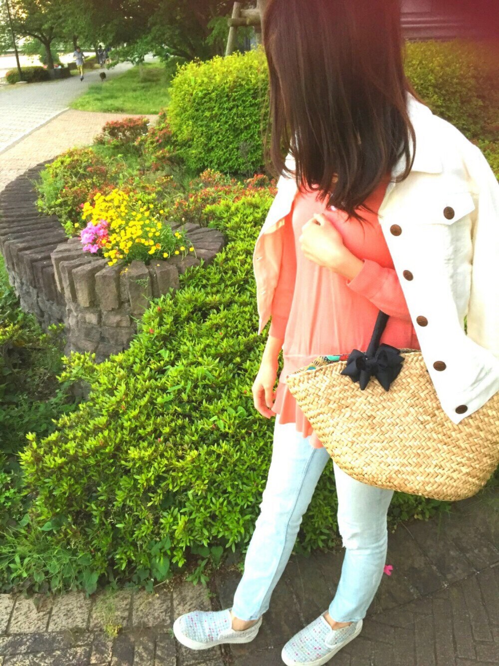今日は天気が良いのでピクニックに出かけることに! ホットサンド作ってカゴバックにつめて♪ サーモンピンクが気分!