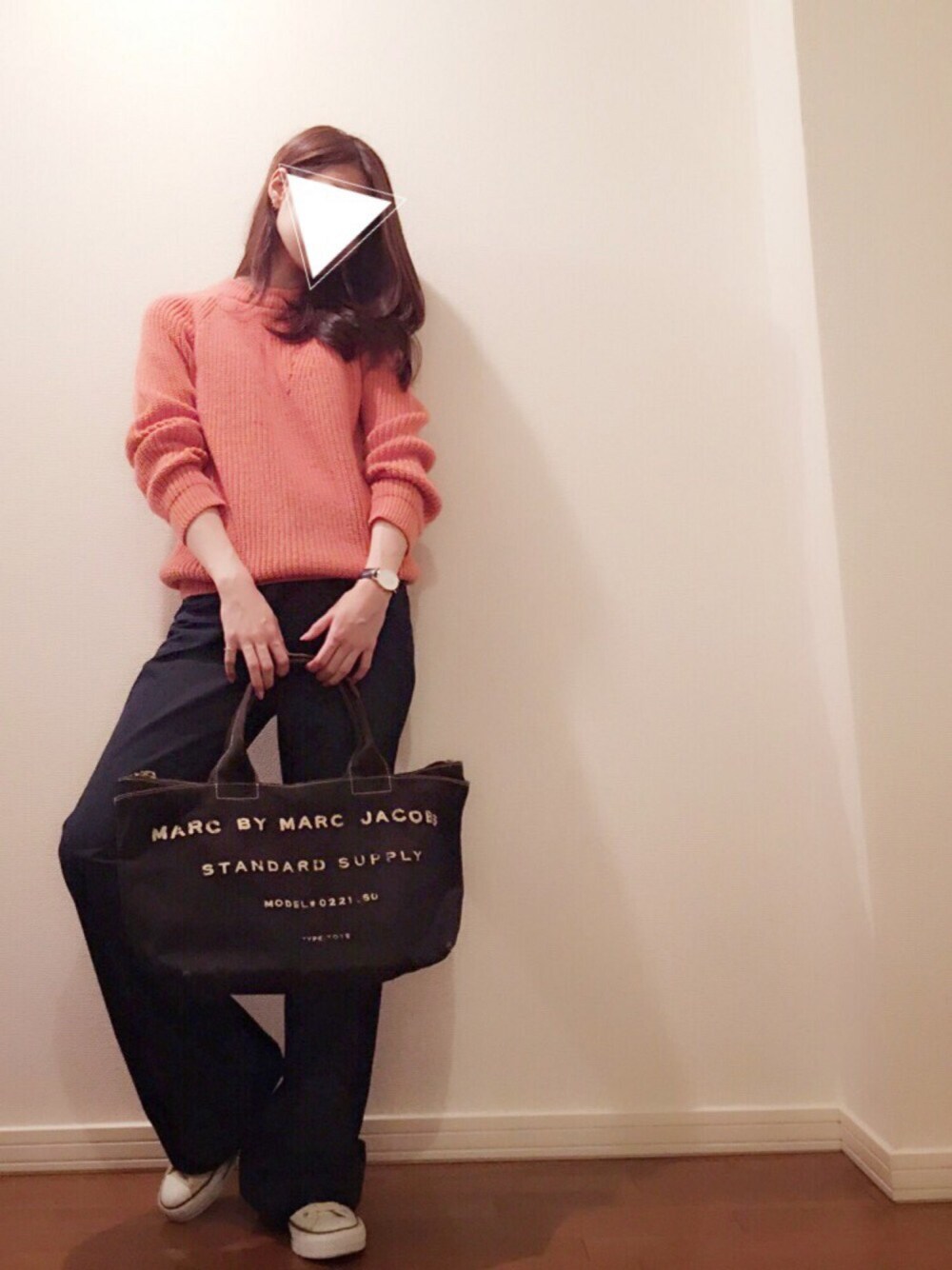 〜衣替え編〜 大好きなコーラルピンクのニット! まだまだ着るには暑いけど、 今年もこのニットはたくさん着たい❤️ ワイドパンツと合わせて普段着コーデ🎶