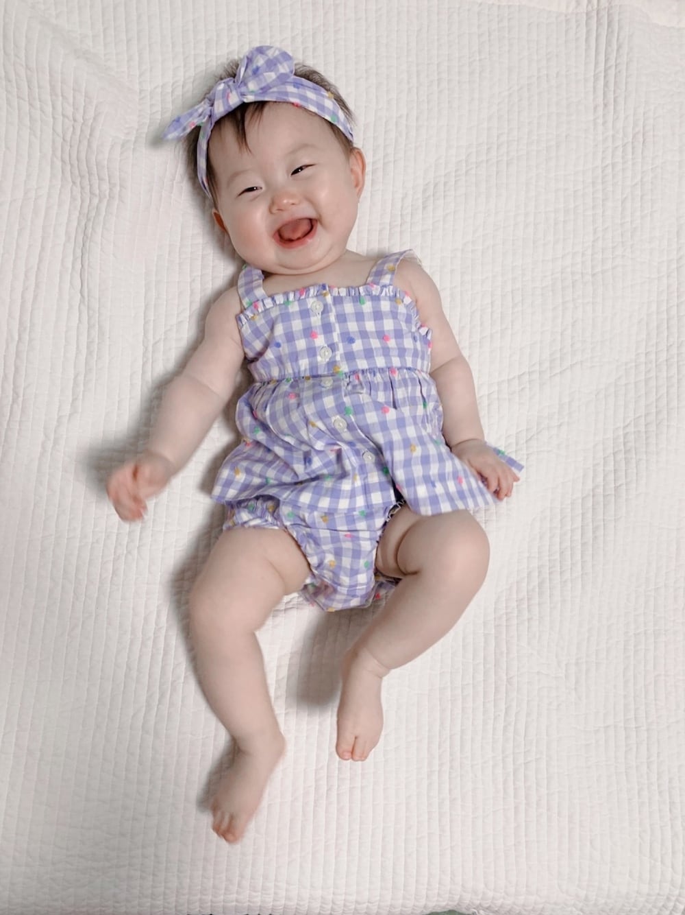 バンダナ、ワンピース、ブルマのthree-piece💜❤💙💚 薄毛のベビたんはバンダナすれば薄毛カバーになることを知りました( ´ ▽ ` )