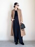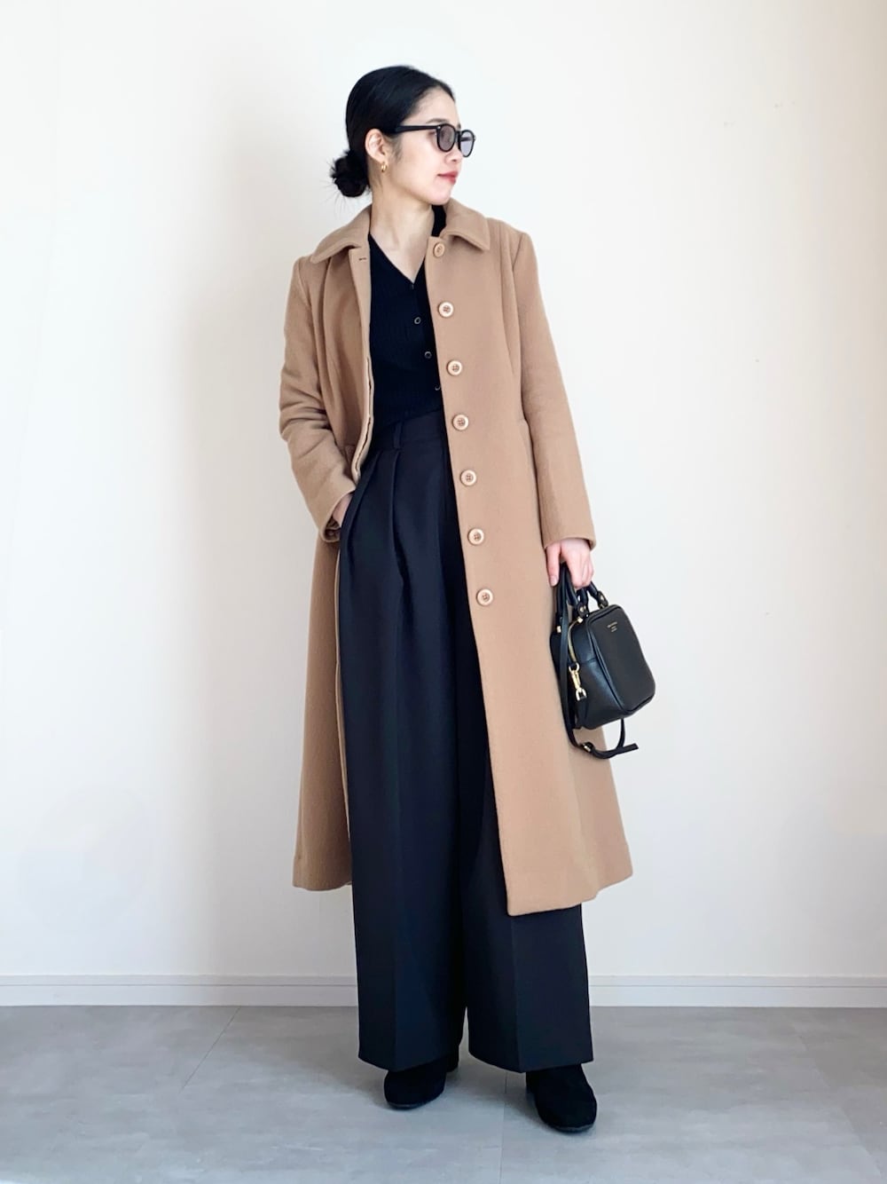 優しい印象のベージュコートを ブラックと合わせて ちょっぴりクールな印象に。