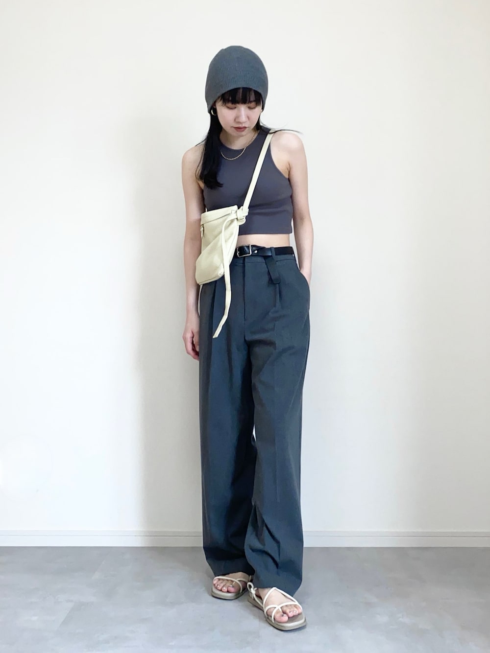 グレーのワントーンに ホワイトのバッグとサンダルを。 タンクトップで肌見せしてる分、 サマーニット帽を被って、 コーデ全体の生地を増やすのが なんだかしっくりきます🤔🤔🤔