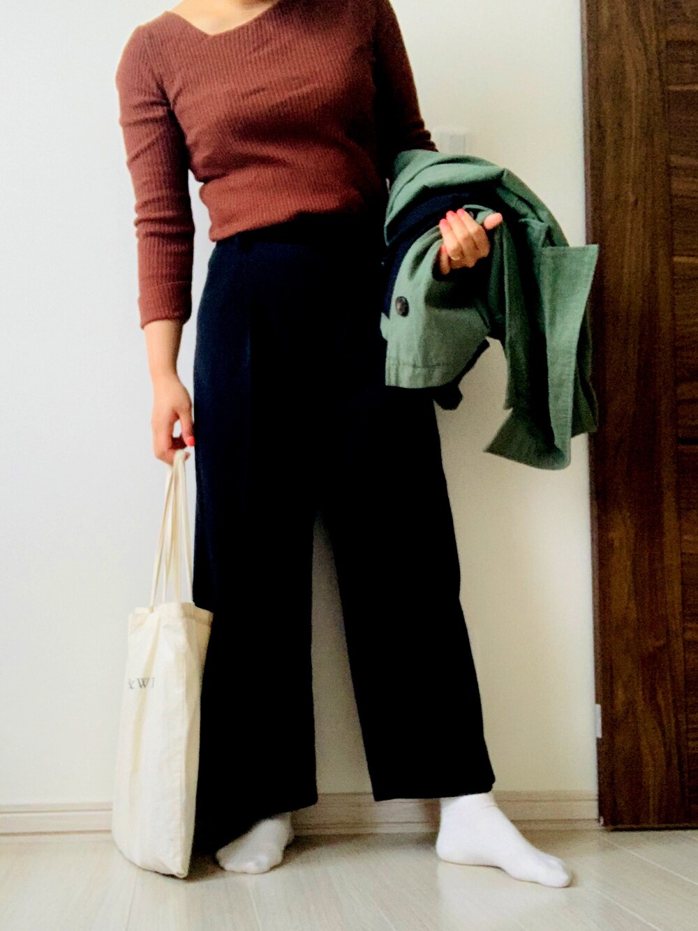 今日はハローワークに行くため ちょっと大人めで静かな格好なつもり。 ひさびさにインカメでコーデ 撮ったらなかなかへんてこ。 なによりもトップスが しわっしわなのがズボラ感満載🤤笑 北海道寒すぎる〜〜