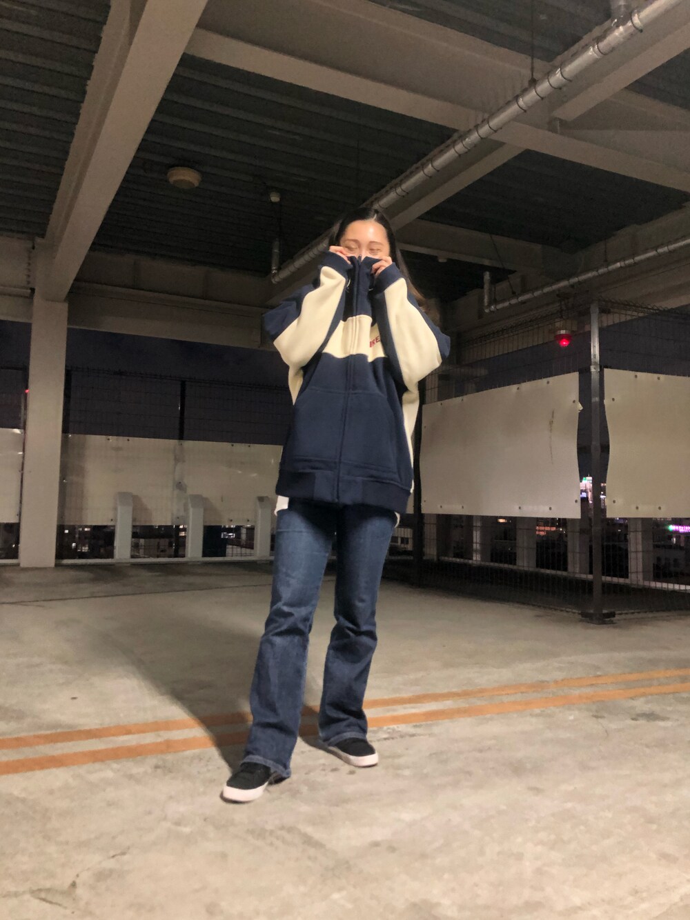 なちゃんのブルゾン「AVIREX/アヴィレックス 2トーン ビッグ フリース パーカー / 2TONE BIG FLEECE PARKA」を使ったコーディネート