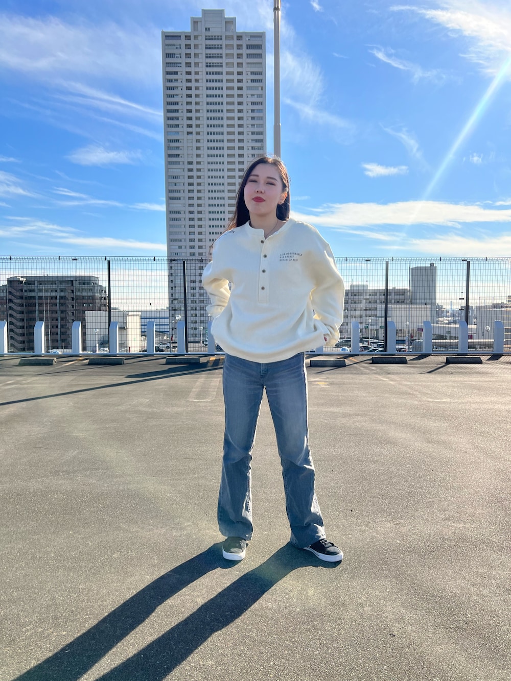 なちゃんのTシャツ/カットソー「ステンシルプリント ヘンリーネックプルオーバー/ STENCIL PRINT HENLEY NECK PULL OVER」を使ったコーディネート