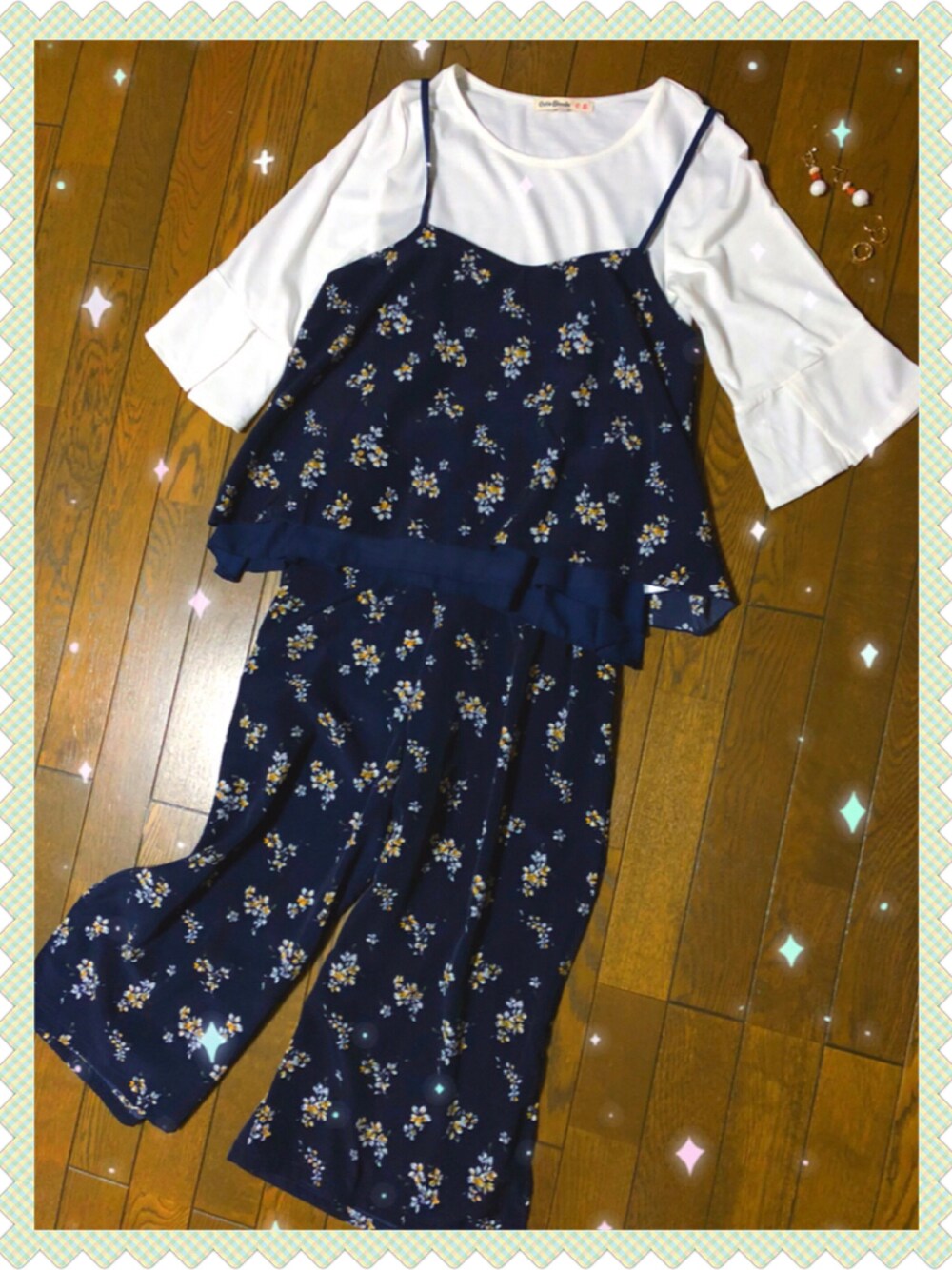 ご覧頂きまして、ありがとうございます☺️ 今回は、セットアップ風コーデ✨ キャミ+カットソーのワンセット&パンツそれぞれ単品ですが、柄が同じだったのでセットアップ風にしてみました! 小花柄の感じが個人的にレトロに思えてツボでした🌼💕 キャミはまさかのリバーシブルなので、シンプルな無地ver.も楽しめちゃいます😳! キャミセット、パンツどちらもそれぞれ¥2,990+taxとお得です👛♪