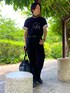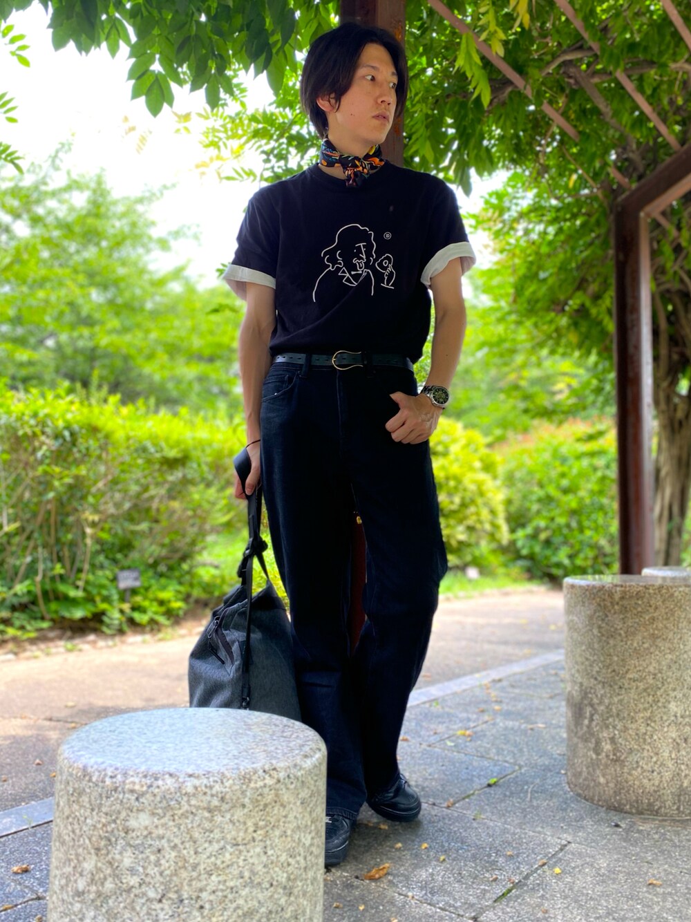 ご覧頂きありがとうございます🐾✨ もうかなり暑いですね😭 黒コーデです◼️ 白Tシャツをレイヤードしてみました! 上にはアインシュタイン🏢🔬🌡 緩い感じが好みです🐾 もし良かったらいいね等頂けると嬉しいです🎉✨ よろしくお願いします🙇♂️