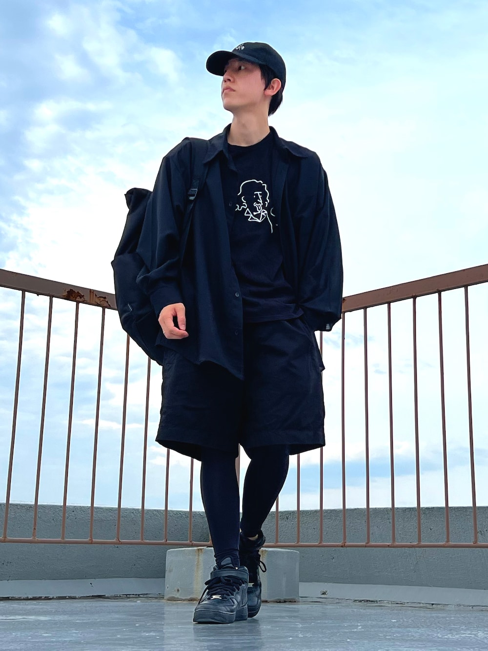 ご覧いただきありがとうございます🐾✨ オールブラックのストリートコーデです! サポートタイツとボリュームスニーカーの相性がめっちゃよかったです!! スポーティな感じも個人的に気に入ってます✨️ もしよかったらいいね等頂けると嬉しいです🎉✨ よろしくお願いします🙇♂️