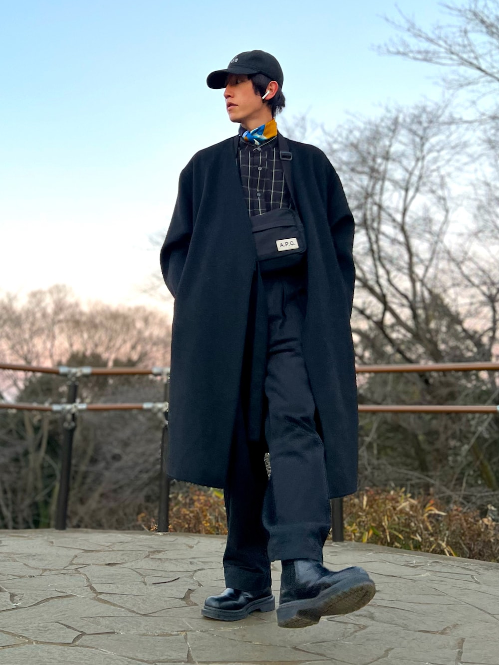 ご覧頂きありがとうございます🐾✨ 今日はオールブラックコーデです🤗 首元に青のスカーフでアクセント。 マフラーもグレーのカラーで少し合わせてみました🧣 マフラーとコートの組み合わせはこの時期鉄板ですね🤗 もしよかったらいいね等頂けると嬉しいです🎉✨ よろしくお願いします🙇♂️