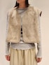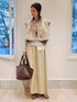 淡いトーンでまとめ、異なる素材を合わせてメリハリをつけました。