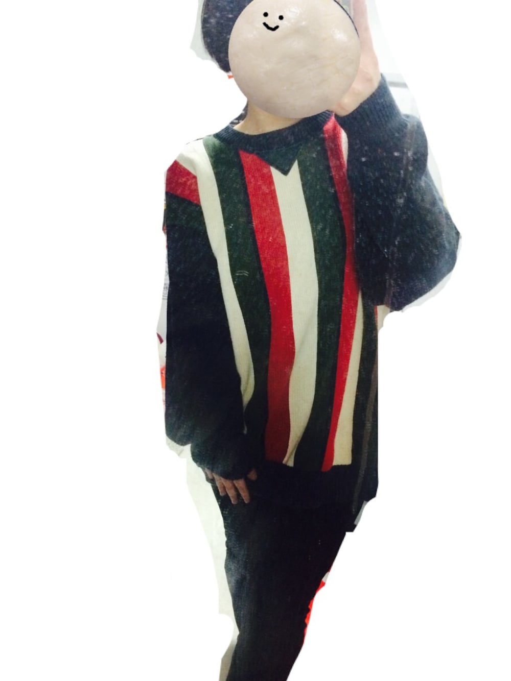 TOMMYの古着のニットです。 メンズのLでだぼっとしてるので、スキニーに合わせてみました。 バイト終わりなので足むくんでて太いです。そうでなくても太いです。