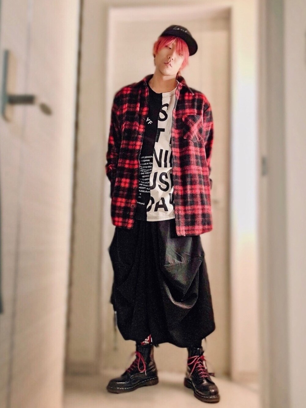 連投失礼します! 「冷やし中華始めました」的なタグが来てるようなので、、、 ネルシャツはさっき近所の古着屋で見つけてゲットしました。 同じくインナーのスウェットも激安でした😊 ひとまず秋モノも赤×黒でスタートしてみたいと思います🤗