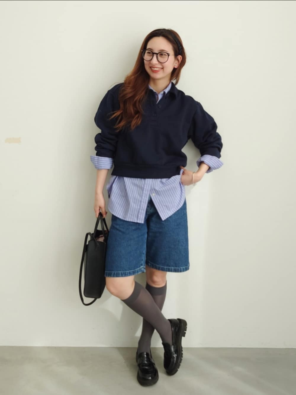 デニムのハーフパンツはボーイッシュだけど シアーソックスでレディ感もプラスしてみました◎