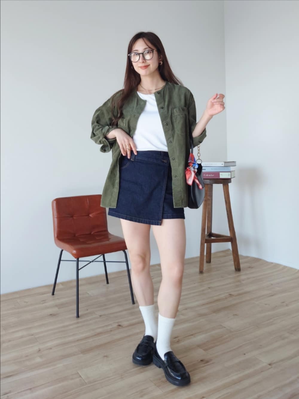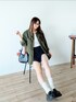 オリーブカラーのコーデュロイで秋っぽムードに☺️ シャツタイプのジャケットなのがまたお気に入り🫶🏻 デニムのスコートは履いてるとよく褒められるし 秋冬にぴったりな深い色味でたくさん着回し中です💭 (他の投稿でも着てます🤭✨)