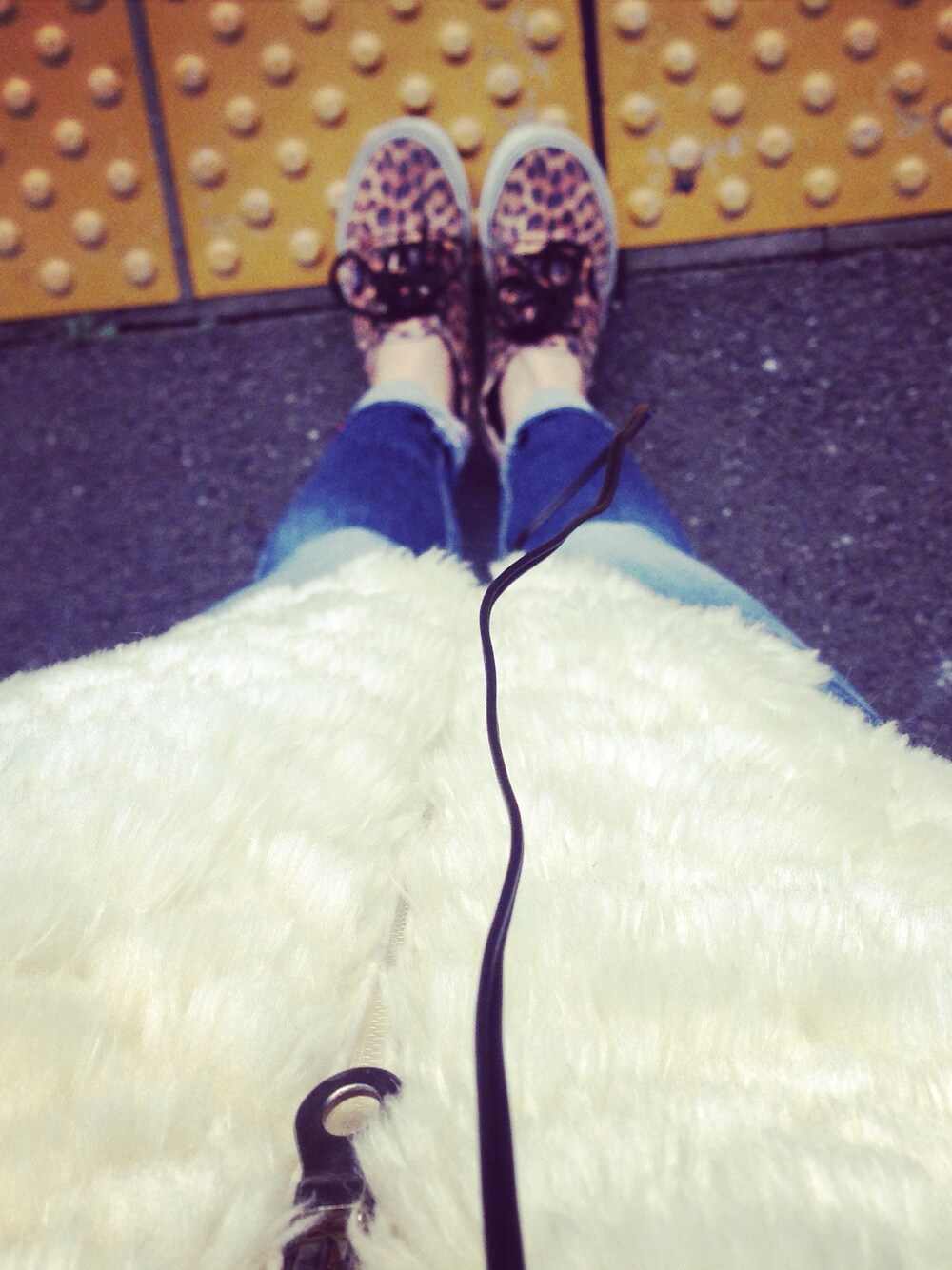 学校スタイル〜♫ モコモコのベスト着て ボリューム出して着痩せ♪(´ε` )笑 何よヒョウ柄の靴が可愛い❤︎