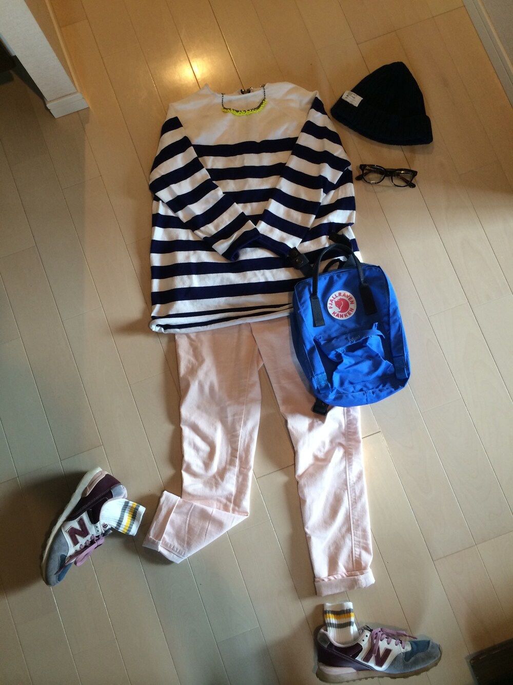 子供がいてもへっちゃらコーデ☆ TOPS ZARA バックパック カンケンミニ 靴 ニューバランス 靴下 靴下屋