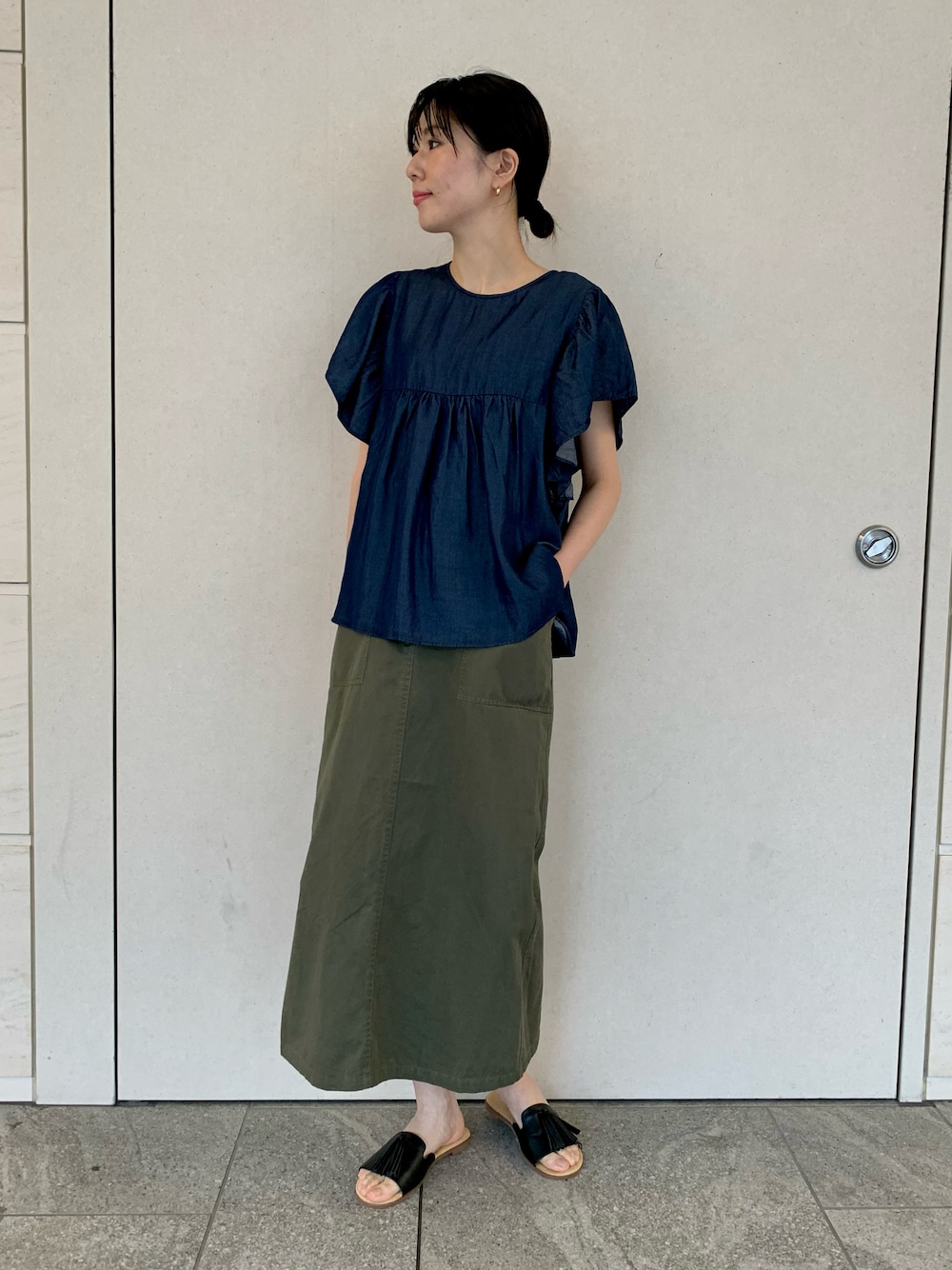 kimmy(DOORS 西宮ガーデンズ)のシャツ/ブラウス「フレアスリーブデニムブラウス」を使ったコーディネート