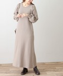 ワッフル素材ですが、暖かみのある起毛素材で冬はもちろん春先まで長く着れるワンピース。パフスリーブでより女性らしく◎
