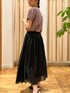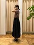 光沢感のあるギャザースカートは、広がりすぎずスッキリ見えるシルエット。程よいシアー感でまだまだ暑い夏も涼しげな印象になります。 甘くなりすぎないように足元はハードめなサンダルに。 ぜひ、店頭にてお試しください。