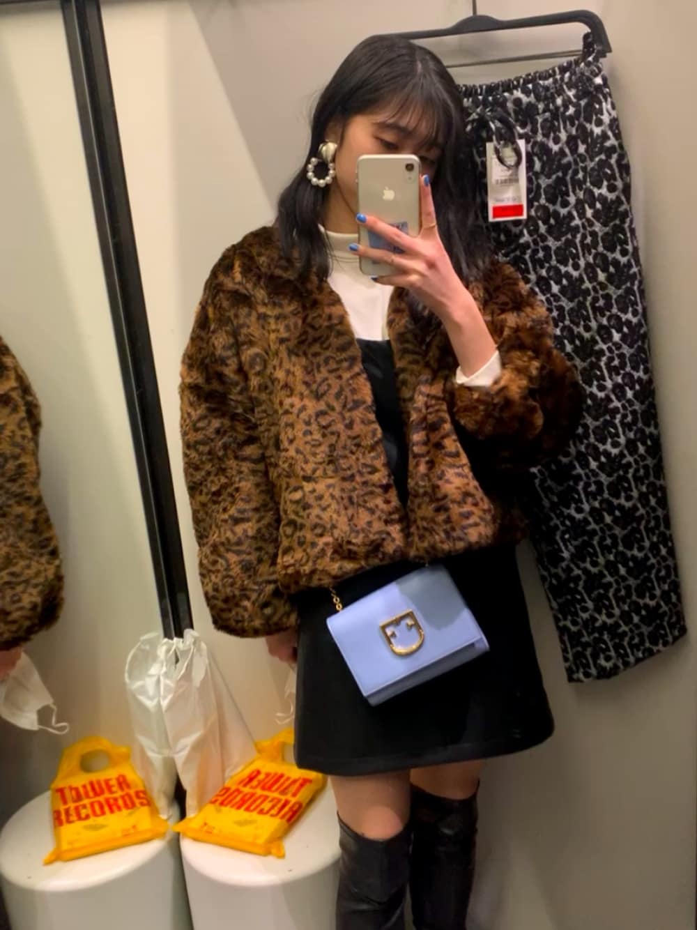𝐌𝗼𝗺𝗼のブルゾン「フェイクファーレオパードショートコート∴」を使ったコーディネート