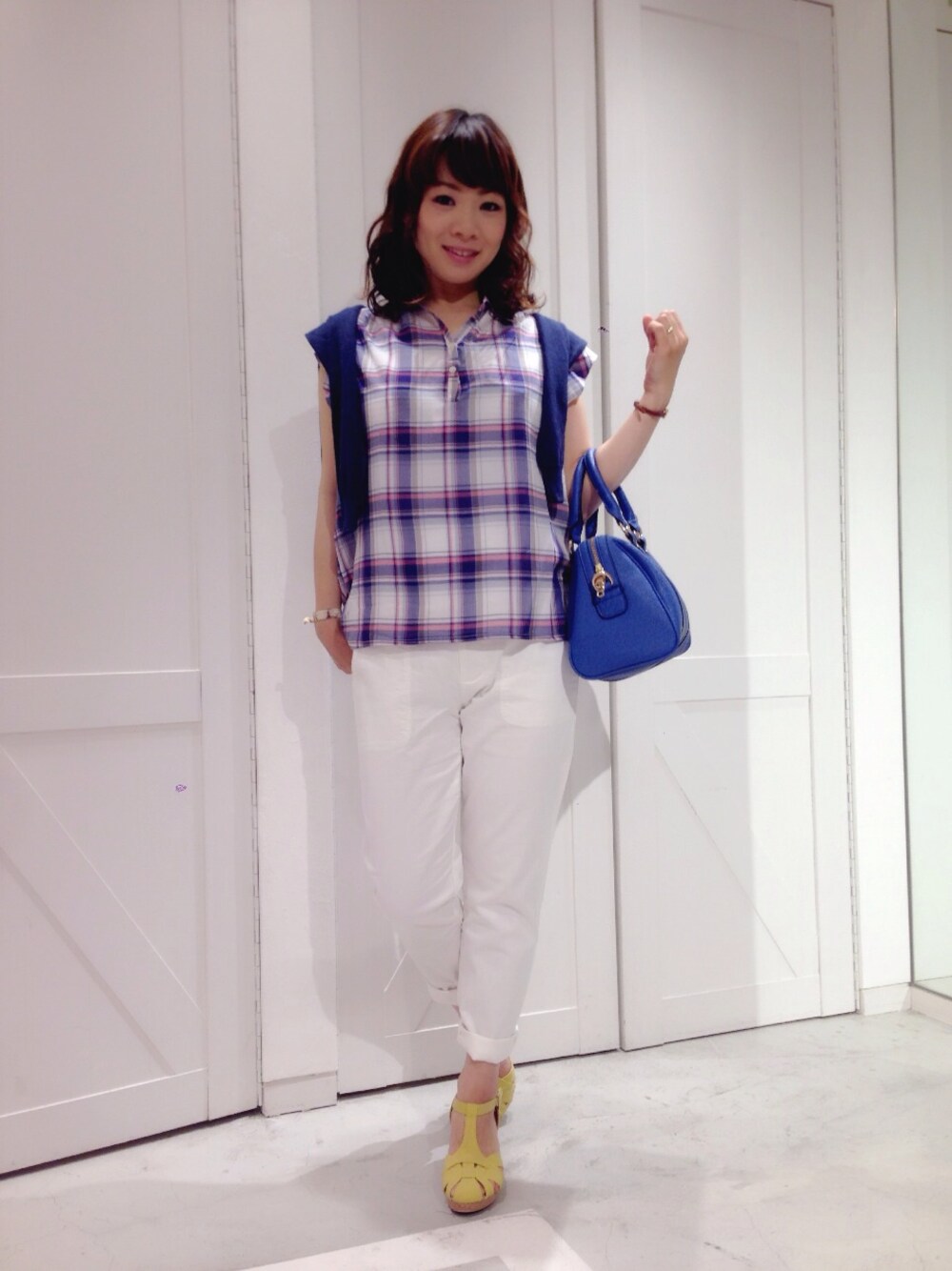 チェックを大人っぽくまとめました。ブルーベースで爽やかに。
