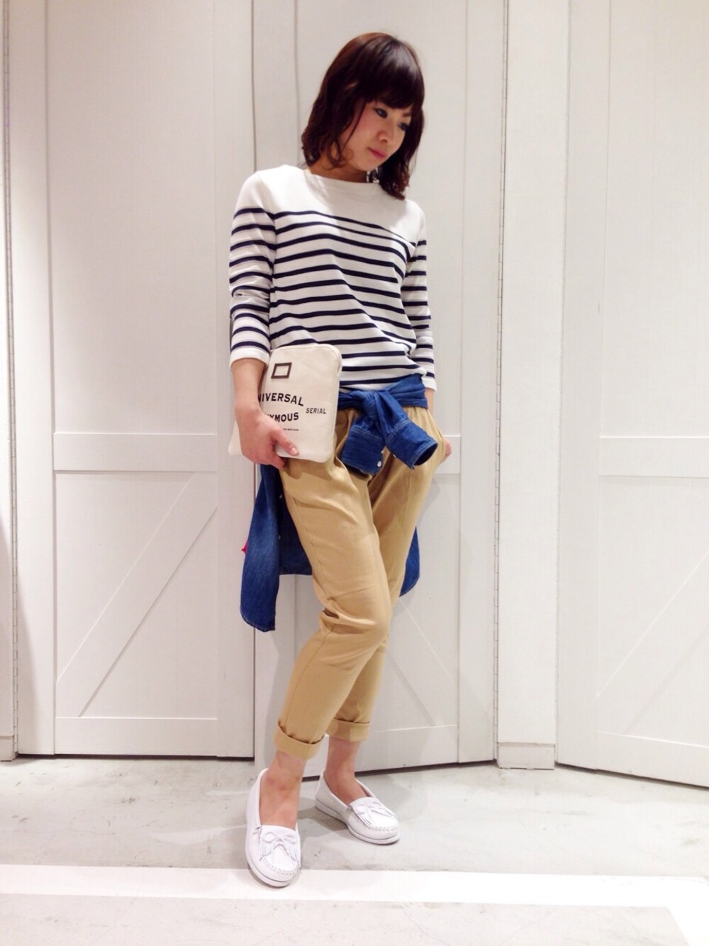 kimoto(オゥ バニスター 新宿高島屋店)のモカシン/デッキシューズ「ミネトンカ・UNBEADED」を使ったコーディネート