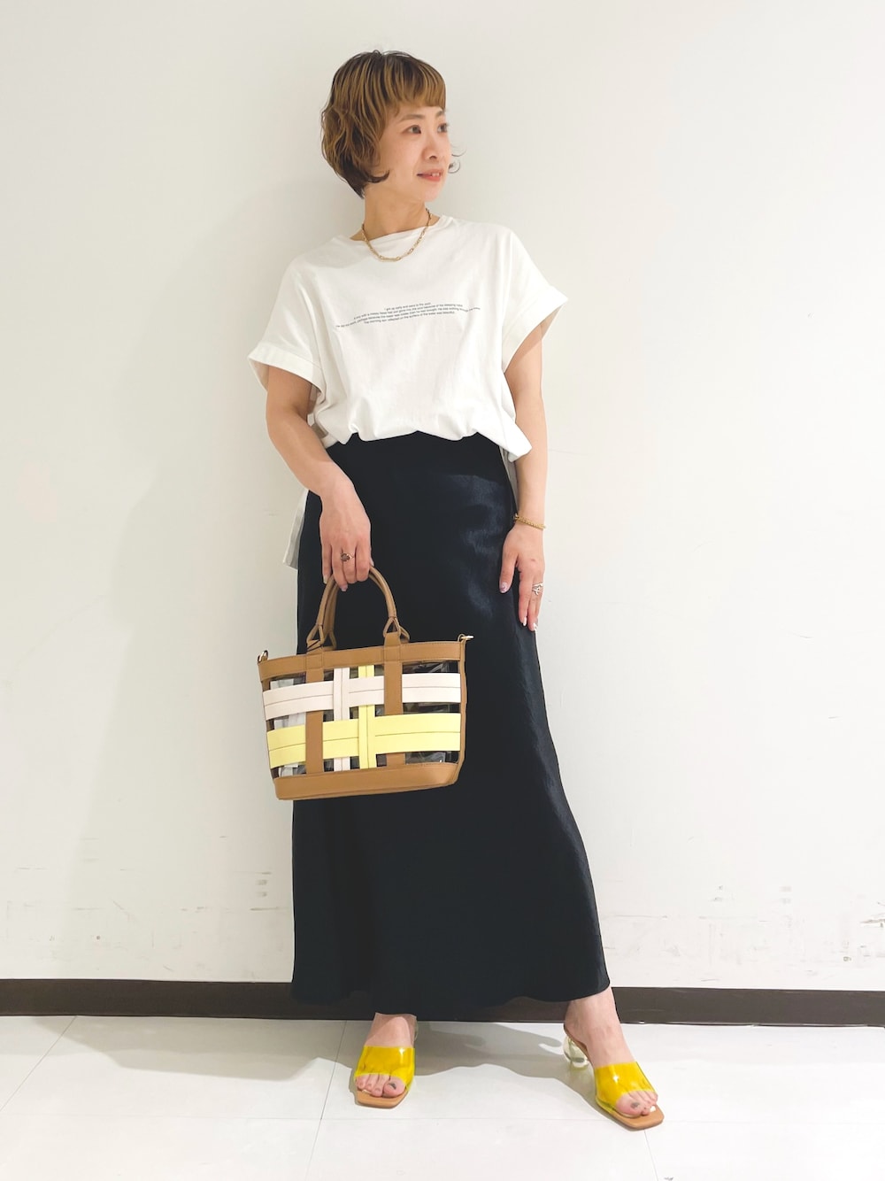 kimoto(オゥ バニスター 新宿高島屋店)のスカート「【大人気定番アイテム新色登場】バイヤスロングナロースカート/シーズンレス/ウエストゴム/ロングセラー/手洗い可能」を使ったコーディネート
