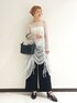 【お呼ばれスタイルにもおすすめ🤍】 ラメのワンピースとパンツをレイヤードしています。 バッグとシューズは普段使いはもちろん、セレモニーや二次会にもおすすめです。 【パンツ】 ▼着用コメント 普段サイズ→36か38 骨盤広め 着用サイズ→38 ややゆったりめに履きたくて38にしました。軽くてシワにならず、速乾性のある素材。ストンとした落ち感で、お尻周りのシルエットは拾いません。サイドラインが控えめなラメでかわいいです。 【パンプス】 ▼着用コメント 通常サイズ→37か38 着用サイズ→37 幅広甲高のため、38を履くこともあります。こちらはややゆったりめの作りで37です。 羊革の柔らかさで足をすっぽり包み込み、幅広や外反の方でも履きやすいです。 太ヒールの安定感&ストラップで、たくさん歩きたい方にもおすすめです! 【バッグ】 ▼商品コメント オリジナルのアクリルハンドルが目を引くバッグ。本体は合皮ですが、なめらかで柔らかく高級感があります。本体と同素材のショルダーストラップ付きでななめ掛けも可能。 500mlのペットボトルが入ります。