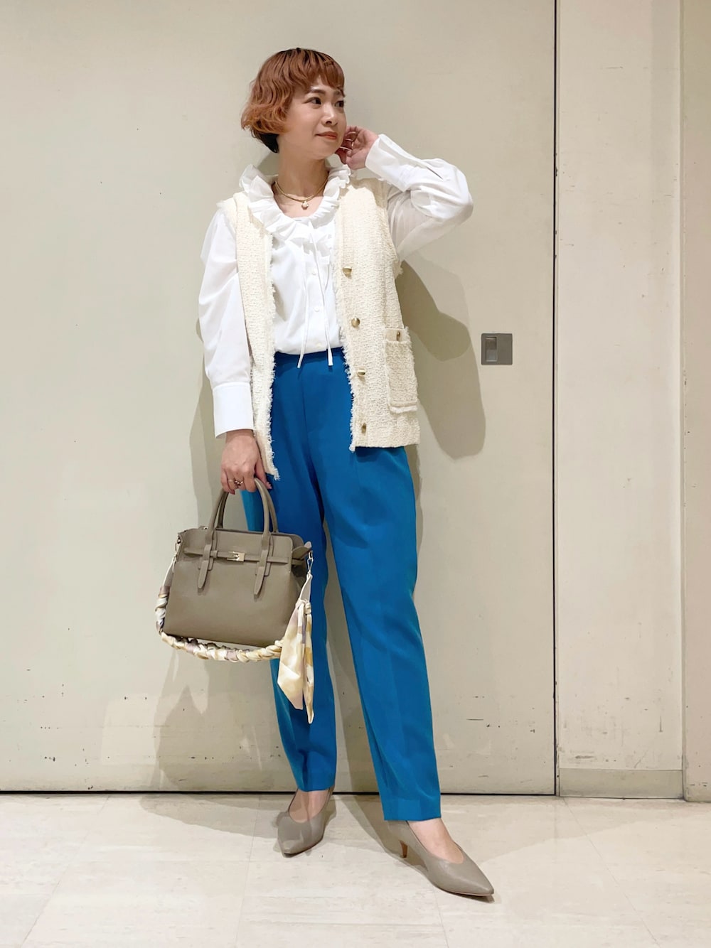 セレモニーだけじゃもったいない!! その後も使えるアイテムがいい!✨ という方にオススメな、肩肘張りすぎないセレモニーコーデです。 【ブラウス】 ▼着用コメント 着用サイズ→フリー 肩幅広めの体型ですが、サイズはちょうどよかったです。透けすぎず、厚すぎずで、インナーでもメインでも着やすい生地感です。 フリルが大きすぎないので、インナーにしても甘すぎず上品に着られます。 【パンツ】 ▼着用コメント 通常サイズ→38 着用サイズ→38 骨盤広めの体型ですが、38にブラウスをインしてもウエスト周りはきつくなく着られました。ゆるやかなテーパードで、お尻周りのラインも拾わず履けました。 【パンプス】 ▼着用コメント 通常サイズ→37か38 着用サイズ→38 幅広甲高のため、38を履くこともあります。パンプスはぴったりめの履き心地のものが多いため、38を選ぶことが多いです。 以前の最高パンプスに比べて、履き口が深くなったことで、つま先の詰まり感がなく、よりリラックスした履き心地になりました。 形はカジュアルにも使いやすいシルエットになったので、お仕事やセレモニーだけでなく、普段使いにもおすすめです!