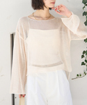kimoto(オゥ バニスター 新宿高島屋店)のニット/セーター「シアーメッシュペーパーニットプルオーバー」を使ったコーディネート