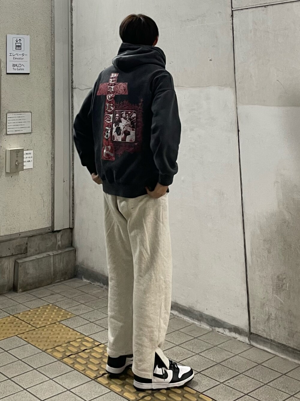 ゆるっとスウェットパンツにパーカースタイル。コーデ決めるのめんどくさい日はこれでOK!!!DUNKかJORDAN履いとけば何とかなります。。