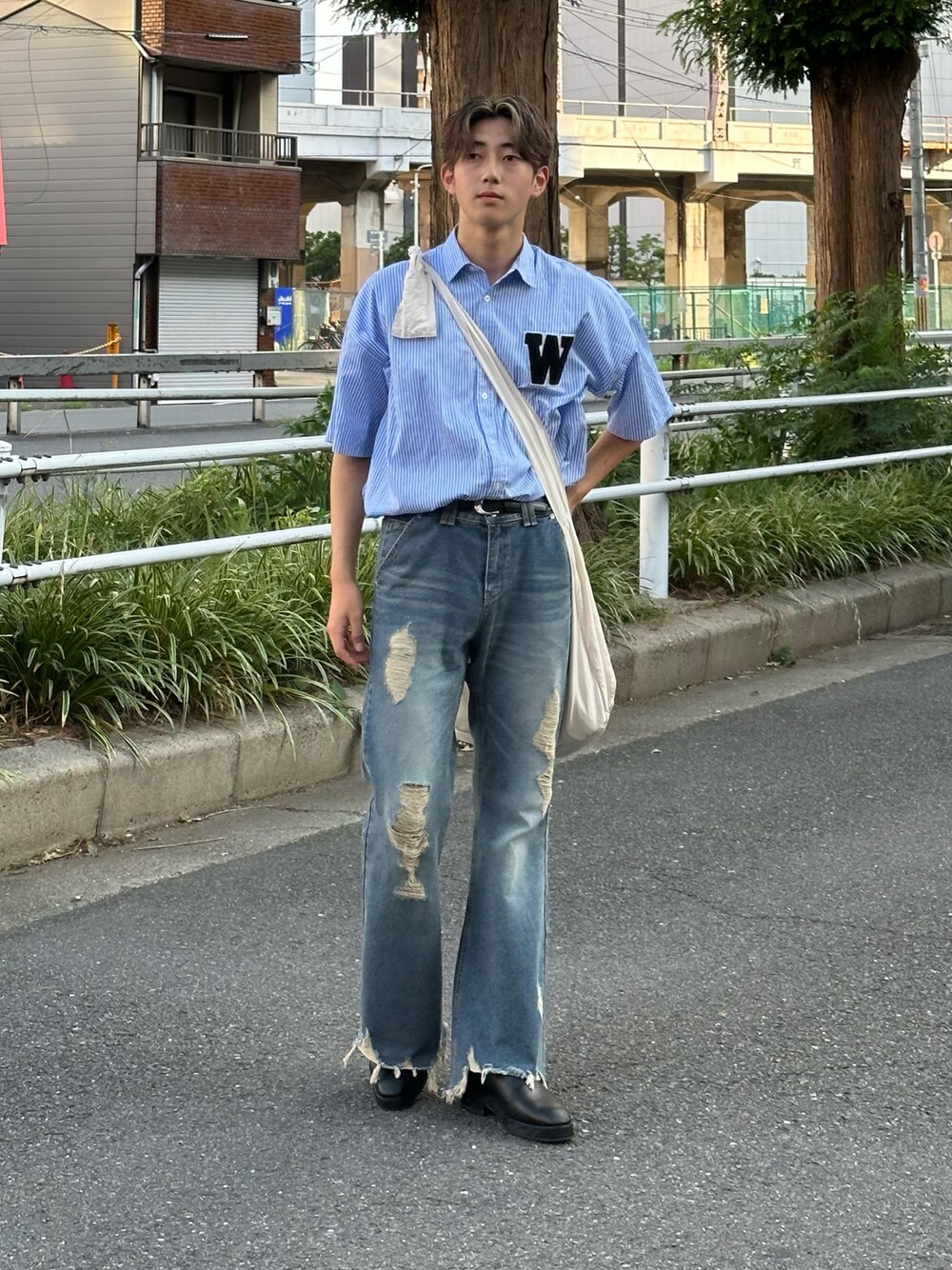 デニム貰っちゃったのでブルーでコーデ組みましたね~ダメージ感と言い色味と言いデニム好きにはぶっささりました~