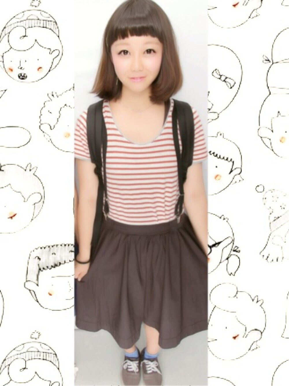 シャツ▷HEART MARKET スカート▷SM2 リュック▷通販 靴下▷tutuanna スニーカー▷on the coutch