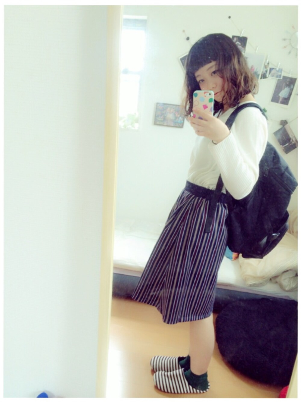 ❁2014.10.5❁ 今日わ台風接近1日前で風がつよし🌀 がしかーし、お出かけしてきまーす♪楽しみ🎩 今日わ寒そうなんでニット着た🍁白ニットかわゆい✎ *白ニット▷amelier *スカート▷ici *靴下▷靴下屋 *リュック▷通販 明日台風警報でるんかなあ~ʔ•̫͡•ʕ💭
