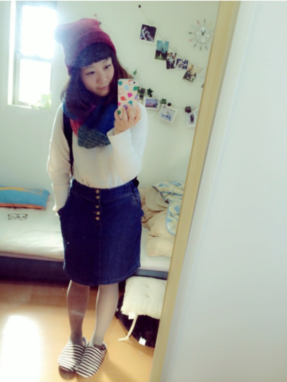 ❁2014.11.22❁ 久々の更新です✧ 今日わあったかい♪ だから今日わちょっと薄着🍓 *白ニット▷on the conch *タイトデニム▷archives *ニット帽▷忘 *スヌード▷THE EMPORIUM *リュック▷通販 *タイツ▷靴下屋 ニット大好き~や~👻💓💓