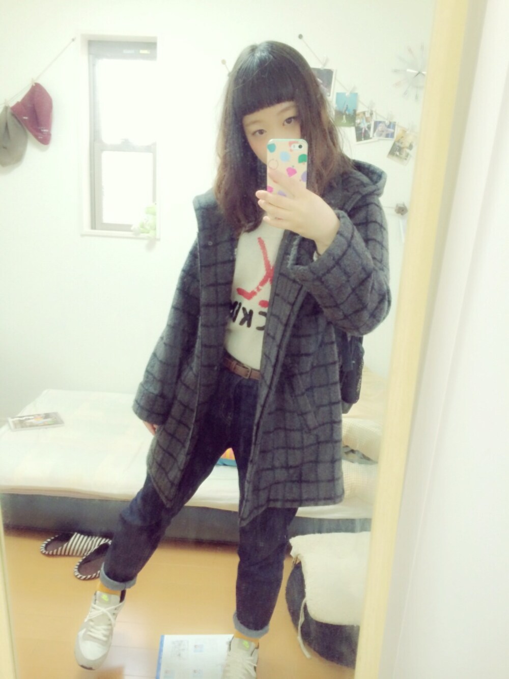❁2015.1.8❁ 今日からついに冬休みも終わり学校です🏃 そんな今日。 ✱ニット▷PAR ICI KLASSISK ✱デニムパンツ▷w closet ✱チェスターコート▷SM2 ✱靴下▷靴下屋 ✱リュックサック▷NIXON ✱スニーカー▷NIKE