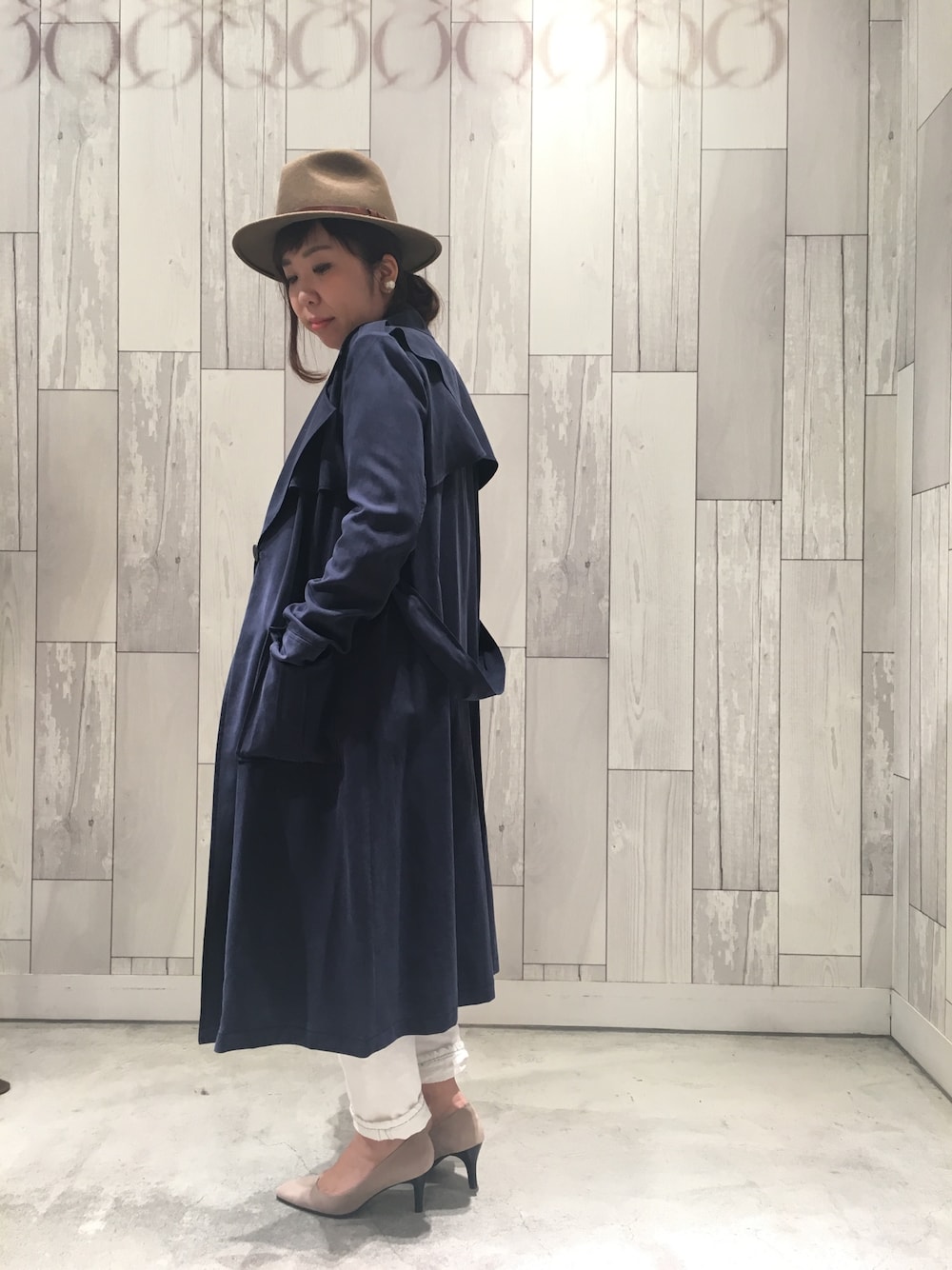 重めのネイビーは白パンツ合わせとロールアップの肌見せで軽めに(^^♪