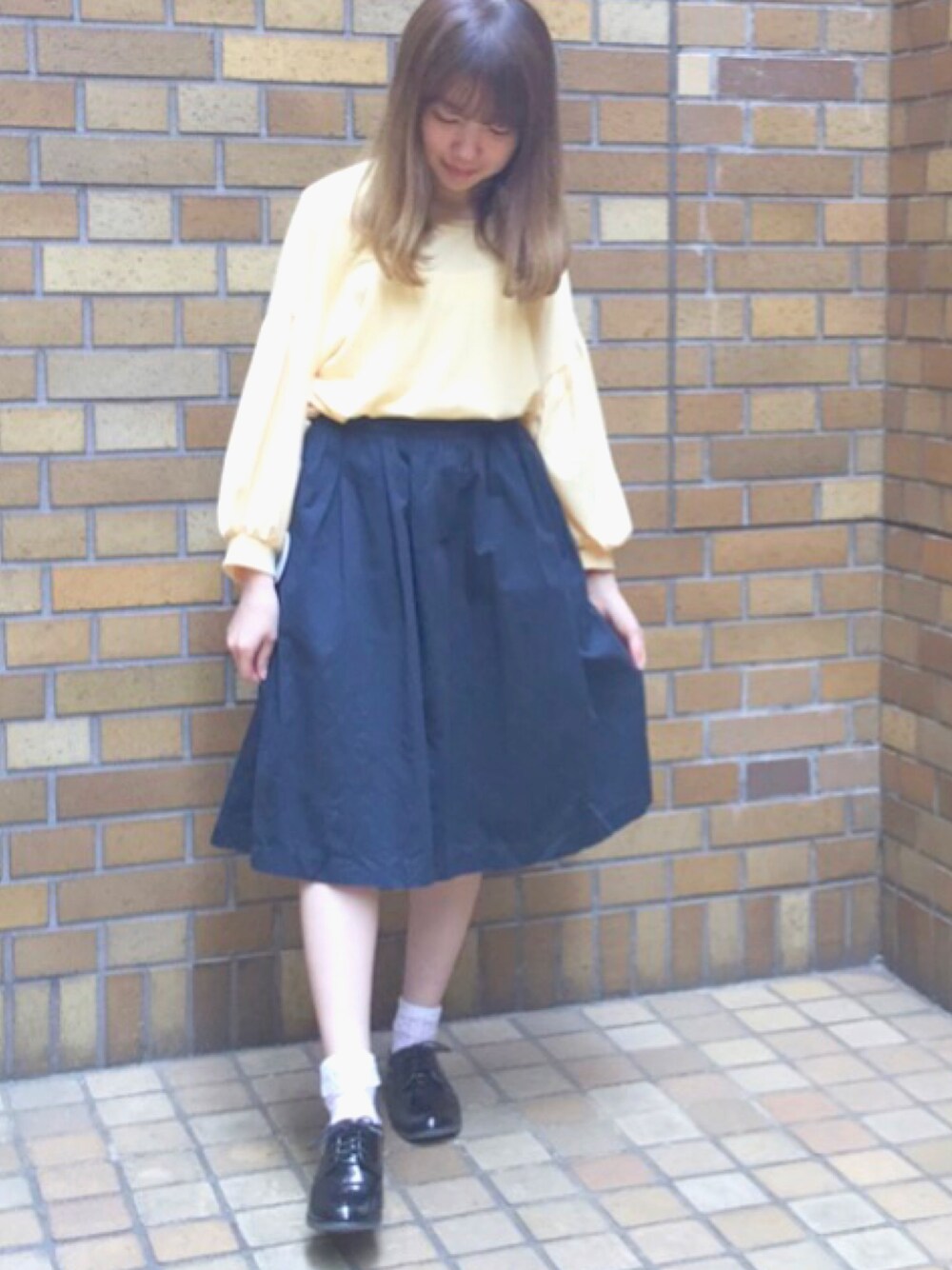靴とスカートが暗めなのでトップスを明るくしてみました。 透け感のある靴下がポイントです☺︎
