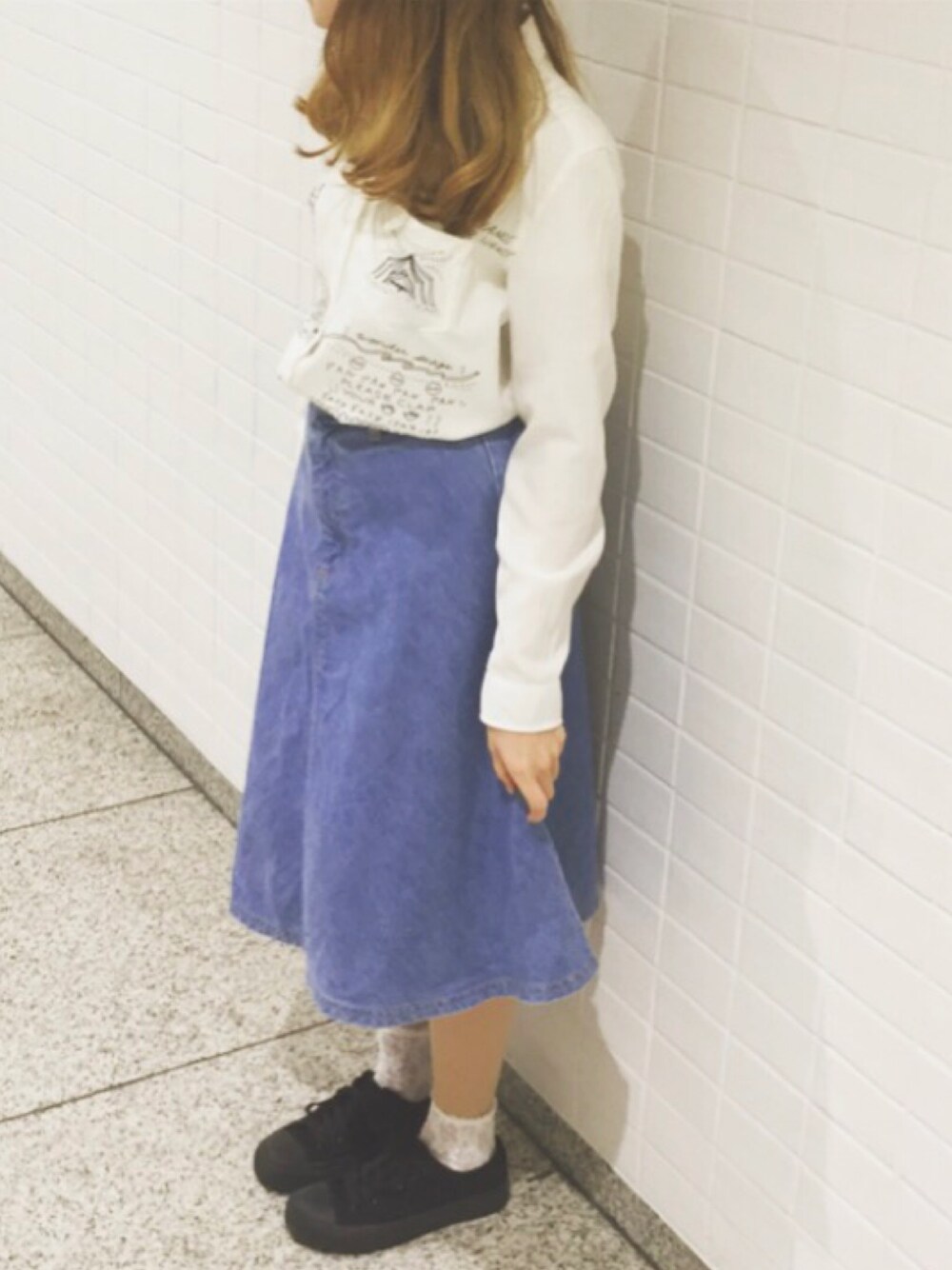 お気に入りのイラストシャツ^ ^ 足元はレースの靴下の下にラメの靴下を重ね履きしてます♡