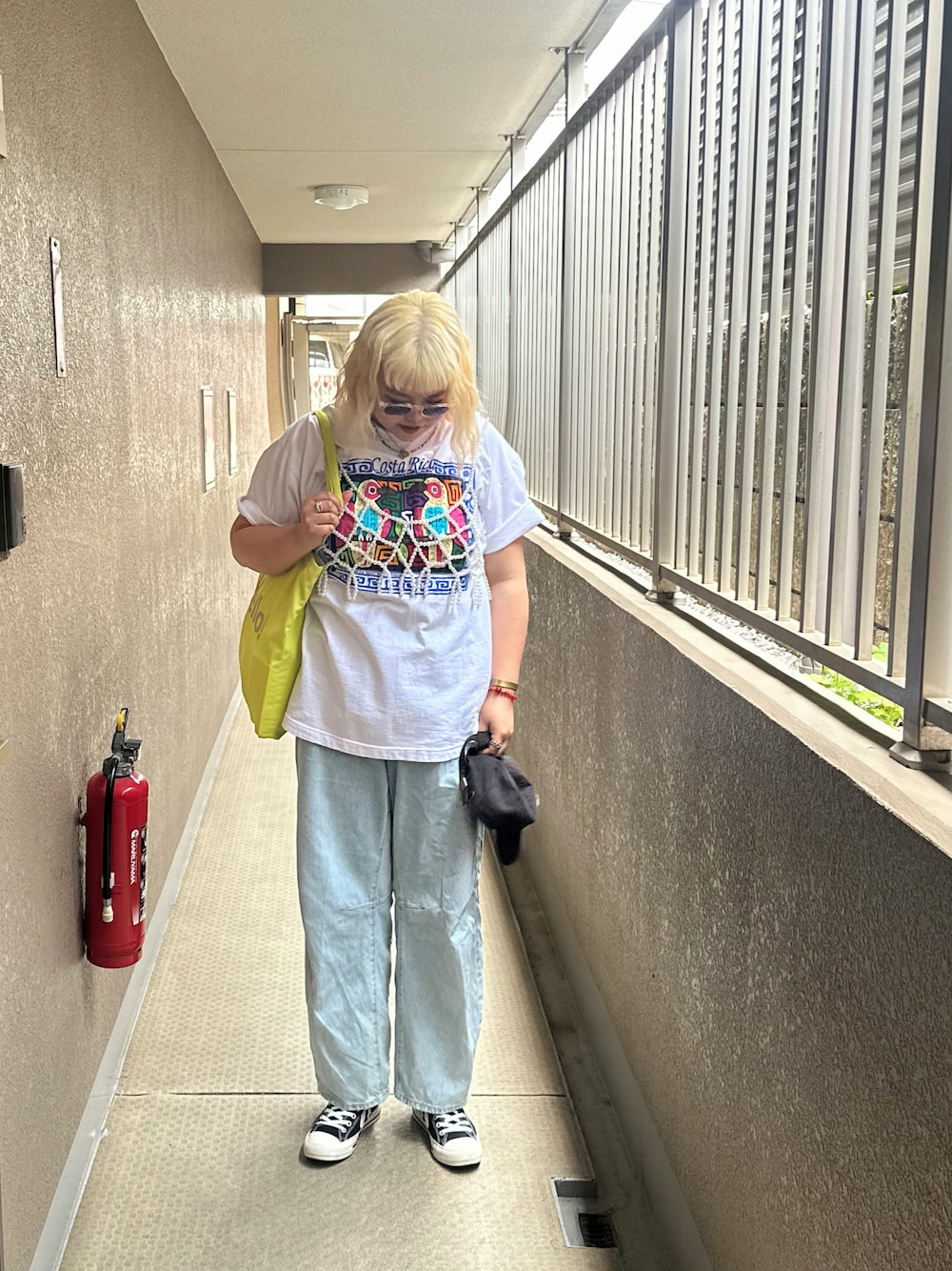 吉祥寺の古着屋さんで 一目惚れした パッチワークのTシャツに パールビスチェを合わせて 髪もふわふわに巻いて お気に入りのコーデ🥰🥰🥰