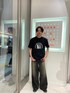今回は猫Tを主役に黒ベースでコーデを組みました。 コーデ自体がオールブラックとシンプルになっているので、アイテムに癖があるものを選びました。 トップスはプリントT、ボトムスにウォッシュドデニムにすることで、アイテムはシンプルながらも様になるコーデとなっております。