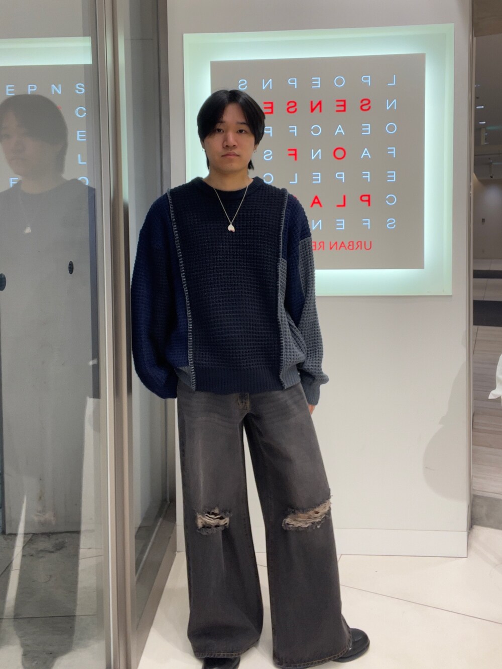 上下のどちらにもデザイン性があるので、シンプルですが小洒落感を出しています。 今日は暖かかったですが、寒い日はコートなどを着ていただくことをおすすめします!