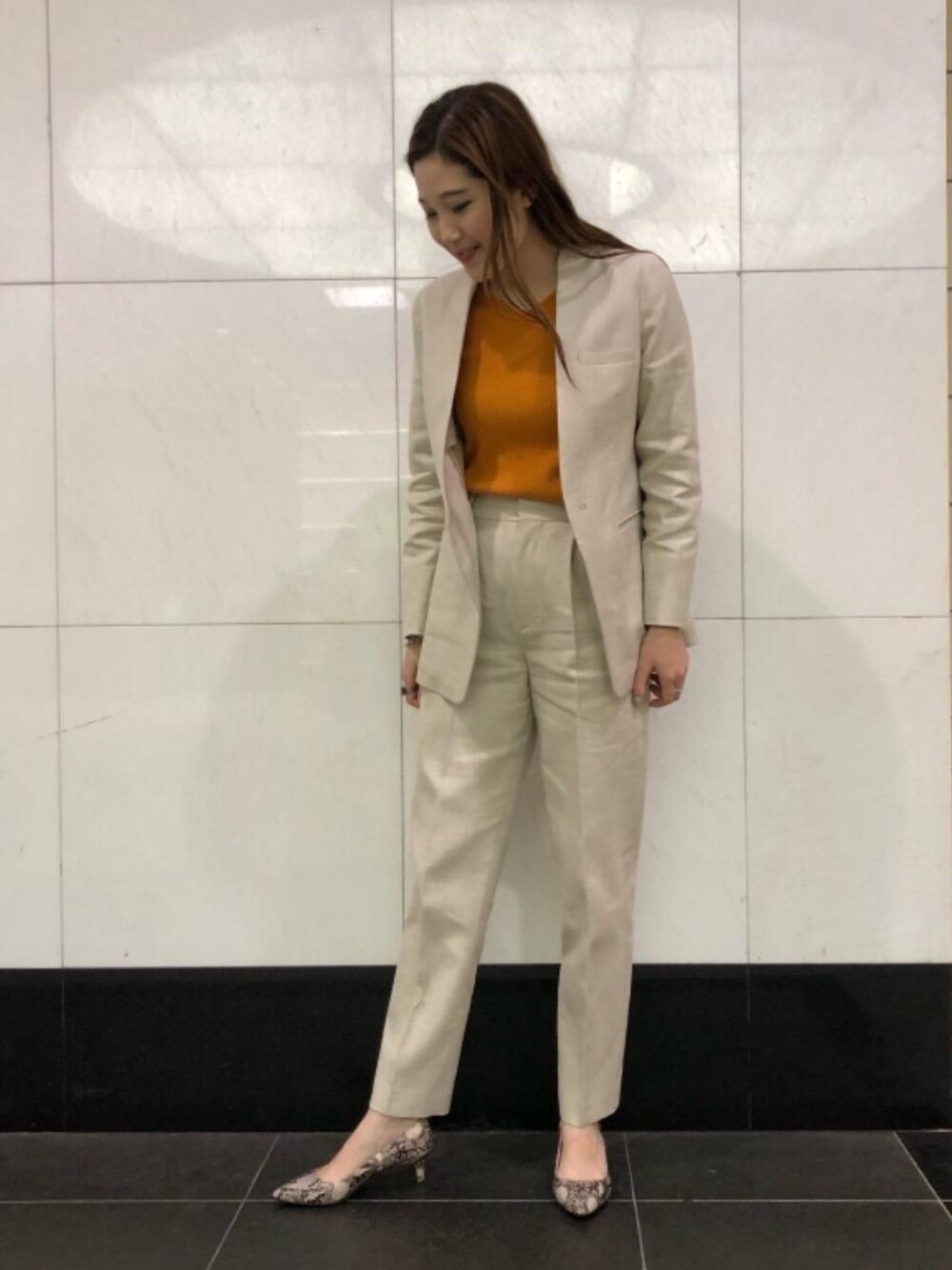 リラックスした雰囲気のセットアップなら、オフの時にも着回せておすすめです。 シューズや中のインナーによって、色んな雰囲気が楽しめます。 今回はVネックのカットソーに、パンプスできれいめにスタイリングしました。