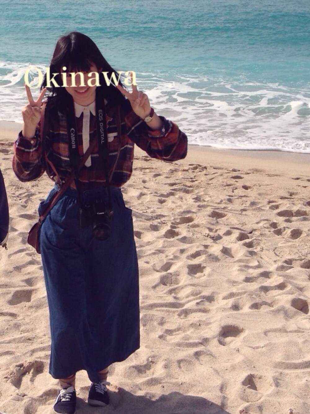 viewありがとうございます ∴ 沖縄旅行の一枚です 皮製のサスペンダーを使って とても長いデニムロングスカートとの バランスを調整したつもりです ⚙