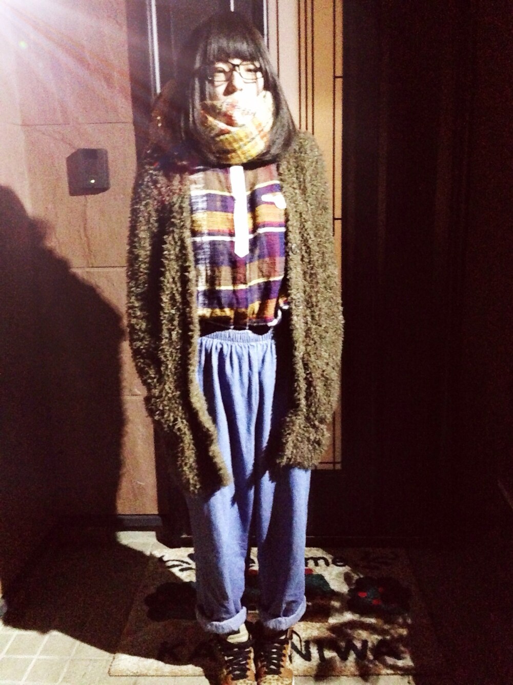 デニム:スピンズ スニーカー:NIKE マフラーはクリスマスプレゼントで彼氏がくれました○△