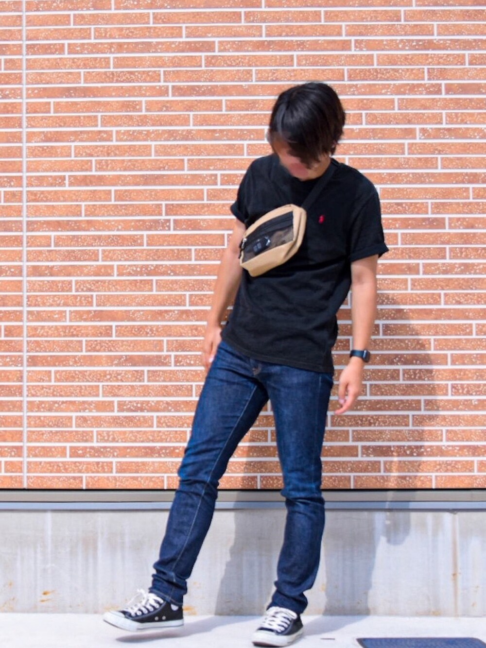 ちょっとそこまで お散歩コーデ✨ tops:ラルフローレン pants:ユニクロ shoes:コンバース bag:Lee