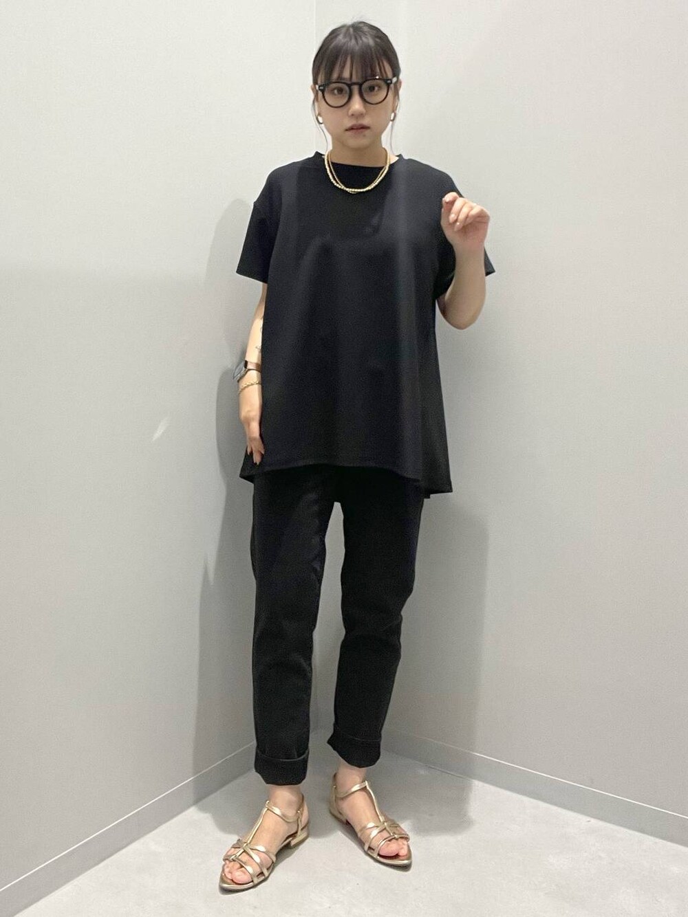 kinaco(GLOBAL WORK Smile Seed Store イーアス高尾)のTシャツ/カットソー「ジョーゼットAラインTシャツ半袖/104985」を使ったコーディネート