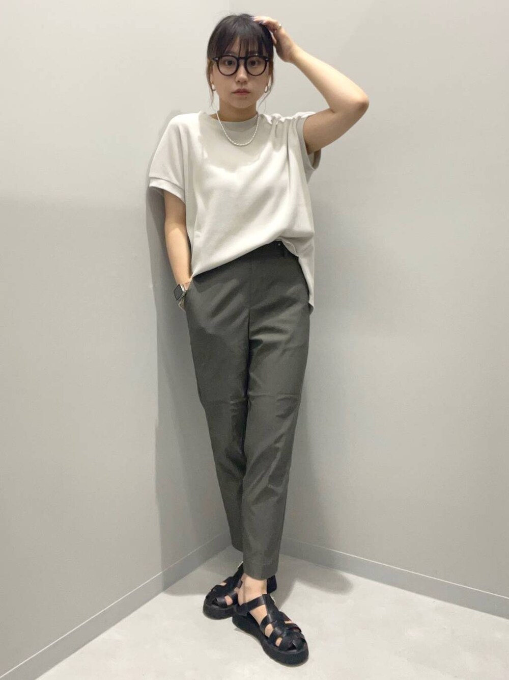 kinaco(GLOBAL WORK Smile Seed Store イーアス高尾)のその他パンツ「NRストレッチスリムテーパードパンツ/180920」を使ったコーディネート