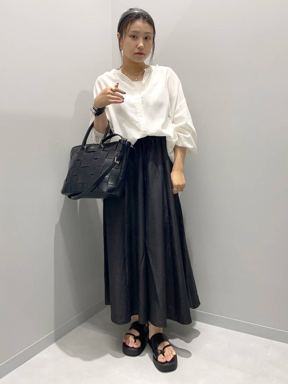 kinaco(GLOBAL WORK Smile Seed Store イーアス高尾)のシャツ/ブラウス「コットンボイルブラウス長袖/176108」を使ったコーディネート