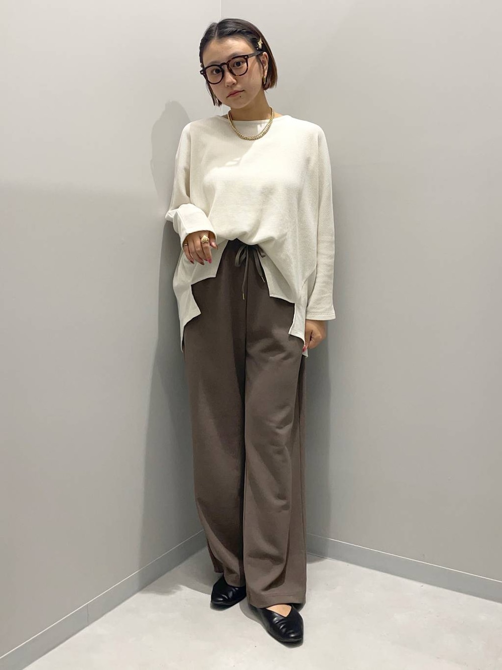 kinaco(GLOBAL WORK Smile Seed Store イーアス高尾)のTシャツ/カットソー「ドルマンワッフルプルオーバー/130992」を使ったコーディネート